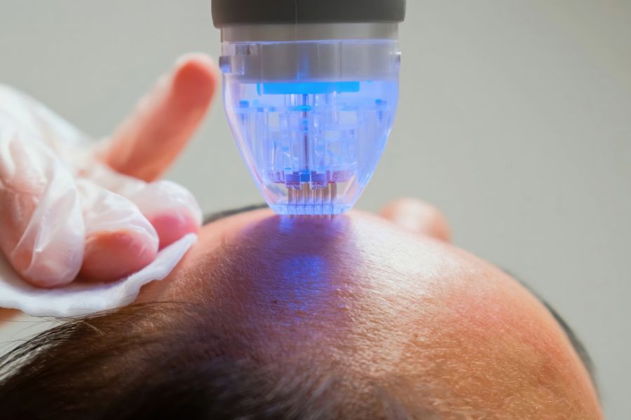 RF microneedling combines tiny, controlled micro-injuries with radiofrequency energy to stimulate the skin’s natural healing response. This process supports new collagen and elastin production, helping the lower face and neck appear firmer and more lifted over time. By improving skin structure and reducing laxity, microneedling can help enhance the appearance of jawline contours and smooth early jowling — without incisions or surgery.